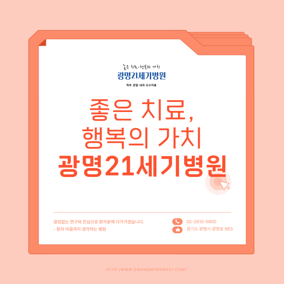 손은 매일 쓰는 만큼 작은 불편도 생활의 질을 떨어뜨릴 수 있죠. 증상이 지속되고 있다면 상태를 점검하는 것이 도움이 될 수 있습니다. 추가적으로 문의하실 사항이나 궁금한 점이 있으시다면 언제든 광명21세기병원을 방문하셔서 상담을 받아보시길 바랍니다.